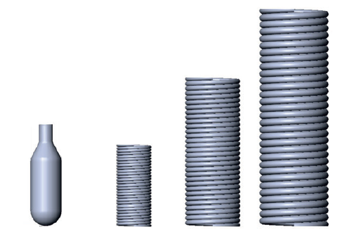 As shown in Figure 2, a compressed gas cylinder of fixed size can be manufactured to contain different pressures, customised to suit the injection force requirements. In the visual representation, a cylinder used in an autoinjector system designed for cylinders up to 276 bar delivers the same force as springs that are physically much larger while requiring more space.