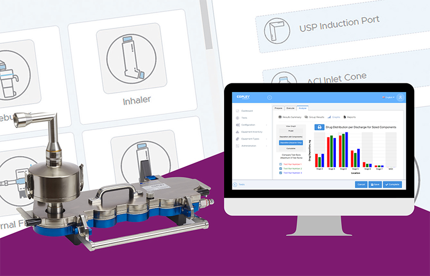 The next step is to process the data to meet its optimal intended purpose, which, in basic terms, is relevant comparison with a target or specification. In R&D, APSD measurements support progress towards the consistent delivery of particles that are optimally sized for deposition in specific areas of the respiratory system, with 5 μm taken as the upper limit for deposition in the lung. At this stage, comparison is therefore typically to answer questions such as “Does device A successfully aerosolise more of the dose than device B?” or “Does the inclusion of more co-solvent enhance dispersion?” In quality control (QC) on the other hand, the comparison is with an established product specification to reliably confirm parity.