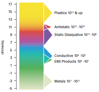 Figure 1: Surface resistivity spectrum for conductive materials.