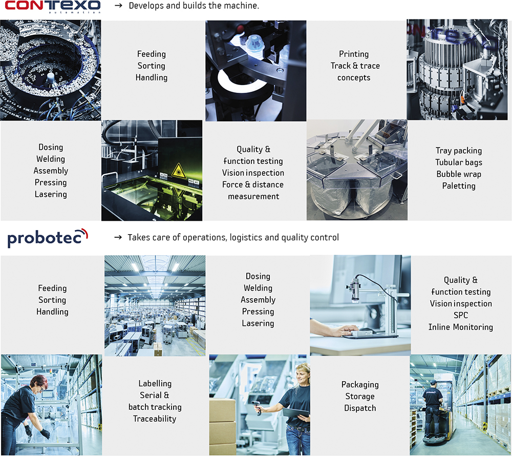 “CONTEXO AND PROBOTEC OFTEN START WITH A BASIC CONCEPT AND A PRODUCT IDEA AND, AFTER ABOUT EIGHT MONTHS, THE CUSTOMER LEAVES WITH A FULLY QUALIFIED PRODUCTION SYSTEM, COMPLETE DOCUMENTATION AND AN OPERATIONAL PRODUCTION LINE.”