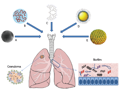 Thus, for both MTB and CF there is a need to find novel treatments that can penetrate into the granuloma or into the biofilm to reach the bacteria and take effect. For both diseases, development of antibiotic-resistant strains of bacteria is a common and increasing problem. Current research addresses this issue by, for example, developing nanoformulations of established active substances to enhance their effect.