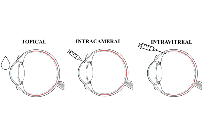The eye is a complex organ with multiple tissue layers that create anatomical and physiological barriers in order to protect it from the environment. These barriers include the cornea and sclera on the exterior while the inner limiting membrane (ILM) protects the retina on the interior. As a result, ocular drug delivery, especially to retinal cells, has long been a significant challenge. For example, drugs delivered orally or systemically have to be administered at very high concentrations in order to achieve a therapeutic effect at the target site. Even drugs delivered locally, in the form of eyedrops or intravitreal injections, face a number of barriers and elimination mechanisms necessitating the use of high drug concentrations to improve efficacy. The off-target effects resulting from such high drug concentrations can then create additional challenges, often resulting in secondary complications.